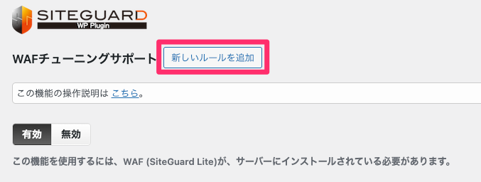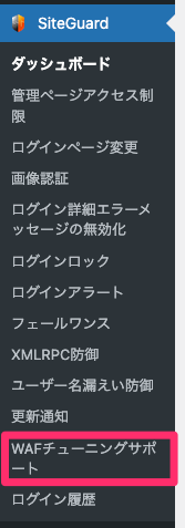 WordPress管理画面の左メニューで、SiteGuard>WAFチューニングサポート を開きます。