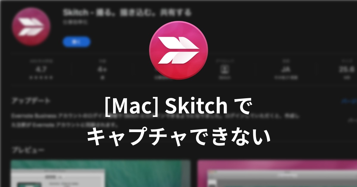 久しぶりにSkitchを使おうとしたら、使えなくなっていた。アプリは起動できるけどキャプチャ範囲が選択できない。前回使用してからOSのバージョンアップをしたとか、そんな記憶もないけど使えない。原因不明。Command + Shift + 4 でも出来るよ。けど、やっぱり私はSkitchを使いたい。